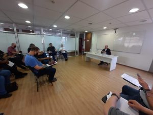 Após a oração das Laudes, Dom Pedro iniciou a reflexão retomando a Assembleia do CRP, acontecida dia 26 de novembro, falando também sobre os pilares do plano de evangelização, contemplados no 8° Plano Diocesano de Pastoral e a importância do ministério nesse contexto de estar a serviço.