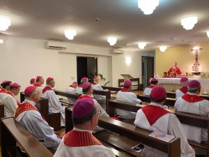 A agenda dos bispos de ontem, dia 20, foi concluída com um momento de oração, jantar e reunião no Pontifício Colégio Pio Brasileiro (PCPB), espaço em Roma dedicado aos estudos e aprimoramento intelectual de padres do Brasil. Confira algumas imagens da celebração de hoje e da programação da noite de ontem.