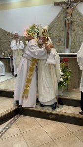 Padre José Aparecido Cassiano, coordenador da Região Pastoral Mauá, leu o Decreto de Nomeação do novo administrador paroquial. Prosseguindo a Celebração Eucarística, sendo entregue pelo bispo diocesano ao Padre Inácio o Livro dos Evangelhos, para que anuncie a Palavra de Deus à todas as Pessoas.