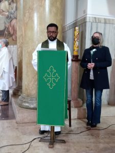 Padre Francisco Semplicio ao final da celebração deixa uma mensagem aos ministros extraordinários: ”Queridos Ministros extraordinários que vocês possam, em nome da comissão, viver bem o compromisso que hoje vocês assumiram. Sempre pediram a intercessão da Virgem Maria de São Mateus Moreira, padroeiro dos ministros extraordinários, para que finalmente possamos, à luz da realidade sinodal, continuar levando adiante o sonho missionário de chegar a todos, através da distribuição, da comunhão, da bênção, das exéquias, do culto, da palavra e da bênção, para que realmente as pessoas do mundo afora também sintam e vejam Cristo em nós. Também agradecer à comissão pelo empenho, pelo trabalho, pela organização para este dia, para continuar brilhantemente exercendo essa realidade ministerial também tão importante na vida de nossa diocese.”