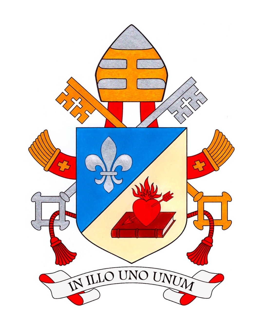 O lema papal, “In Illo Uno Unum” (“No Único, somos um”), reflete a unidade dos cristãos em Cristo, inspirado nos escritos de Santo Agostinho.