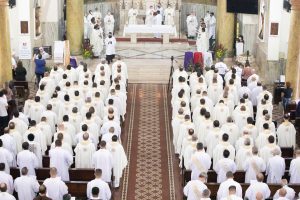 Dom Pedro se dirige aos presbíteros e pede: “Meus queridos sacerdotes celebrem a eucaristia para o povo. Celebrem também com fervor a oitava da Páscoa. Caríssimos, vocês são a honra e coroa de nossa igreja, que pede a cada um de vocês: voltem ao primeiro amor. Todos os carismas estão em função do serviço, mas assim está o carisma de pastores e mestres. Agradeço nosso clero pelo trabalho e generosidade na pandemia, com muito sacrifício por parte de todos, muitas vezes pondo em risco a própria vida. Deus seja louvado por este testemunho de fidelidade”, diz Dom Pedro. (clique aqui e leia a homilia completa)