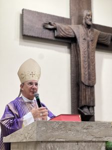 Dom Pedro acolheu a todos os padres presentes e as famílias, falou em sua homília sobre a presença do amor de Deus nas famílias: “O sacramento do matrimônio confere aos cristãos uma missão maravilhosa, não só de viver o amor, mas de testemunhar o amor de Deus. Mostrando que é possível ser no mundo uma imagem do amor trinitário, comunitário que é o próprio Deus.”