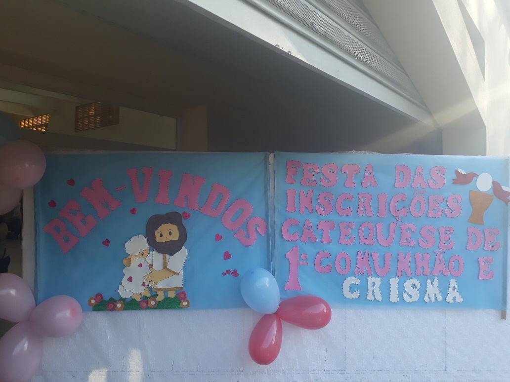 Aconteceu em nossa paróquia no dia 13 de julho das 08h às 17h, a “Festa das Inscrições”, onde as pessoas podiam fazer as inscrições para a iniciação a vida cristã com crianças (catequese em preparação para a Primeira Eucaristia) e catequese com jovens e adultos (catequese em preparação para o sacramento da Crisma). Neste dia nossos catequistas recepcionaram as famílias com uma conversa acolhedora, diálogo e esclarecimento. Alegria e entusiasmo marcaram presença deste importante encontro na caminhada da catequese em nossa comunidade.