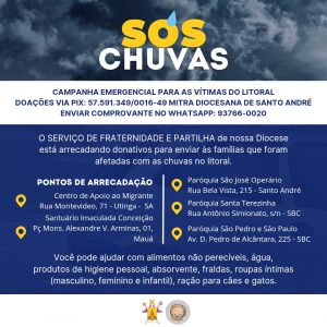 Através do Serviço de Fraternidade e Partilha Diocesano, as sete cidades do Grande ABC, junto do seu bispo, Dom Pedro Carlos Cipollini, realiza uma campanha a fim de levar donativos aos que mais necessitam neste momento.