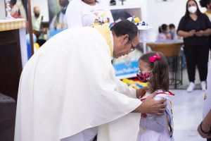 Presidiu a celebração o Padre Osvy José Guilarte Figuera, assessor eclesiástico da Infância e Adolescência Missionária e do COMIDI (Conselho Missionário Diocesano), seu testemunho de fé e experiência de ter participado da IAM em seu país natal ajudaram aos presentes a acolher a mensagem do “Ide” que Jesus nos deixou no Evangelho de sua Ascensão aos céus.