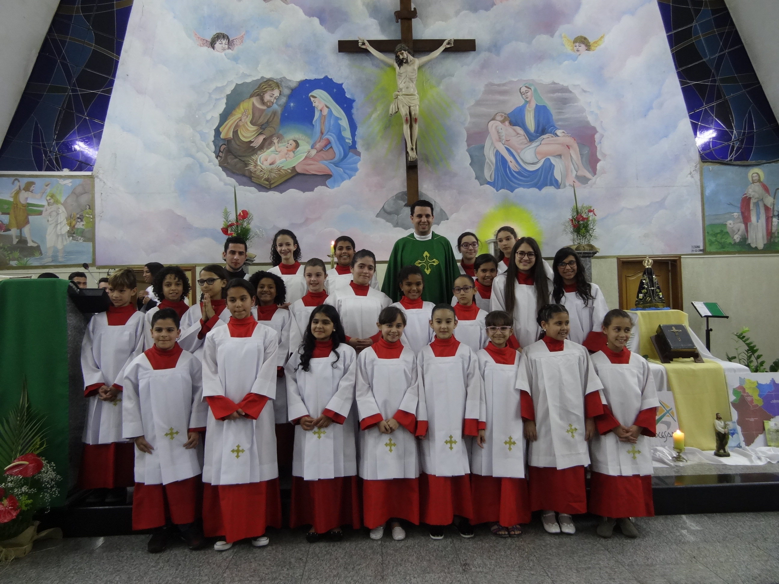 No domingo (03), na missa das 18h, 10 novos coroinhas e 7 novos cerimoniários foram instituídos para servir ao altar desta paróquia de Piraporinha.
