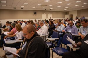 Reunidos em Aparecida (SP), no Centro de Eventos Padre Vitor Coelho de Almeida, representantes das seis arquidioceses e 36 dioceses do Estado de São Paulo refletem o tema central “Comunidades Eclesiais Missionárias numa Igreja Sinodal”.
