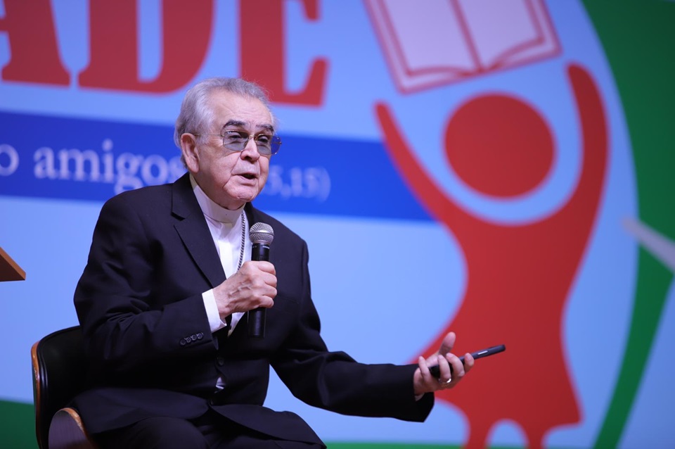 O primeiro palestrante do evento foi o padre Zezinho, SCJ, que compartilhou sobre a sua trajetória de evangelização das famílias. Aos 82 anos, o religioso motivou os participantes a abrirem os seus horizontes em relação à evangelização.
