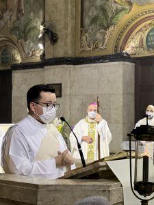 Dom Pedro iniciou saudando a todos e falou sobre o aniversário diocesano: “Hoje dia de ação de graças, porque nós comemoramos os 68 anos de criação da nossa Diocese de Santo André, vamos rezar por nossa igreja com fervor e alegria, alegria de fazermos parte dela”.